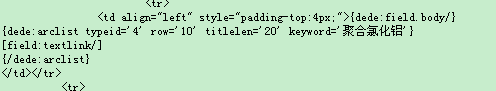 {dede:arclist typeid=’4′ row=’10’ titlelen=’20’ keyword=”}