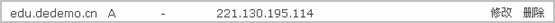 一般这个需要通过域名商那里进行解析,这里我们就拿dede58.com来举例,我们添加一个二级域名的解析目录,将edu的二级域名解析到服务器上面去。