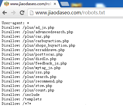 7,robots掉带?的网址。曾经的一度,很多人利用带?的网址来做虚拟网址,引起整个seo行业的惊动,而其中的技术原理就是百度收录了大量大站的带?网址,如果我们禁止掉带?网址的话,这类的行为就无法进行。同时,也会由于其他的方面导致带?网址的收录,会对seo不友好的,因此我们建议都robots掉。比如我们焦大seo服务联盟就屏蔽掉了这类网址的收入,举例如下: