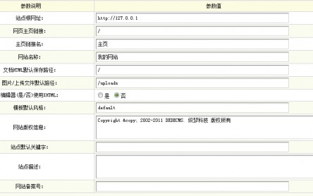 - 网站主页链接:用于前台模板调用,这里写”/”不能写链接,如果写链接在前台模板调用时点击主页会出现双重链接,http://127.0.0.1http//127.0.0.1