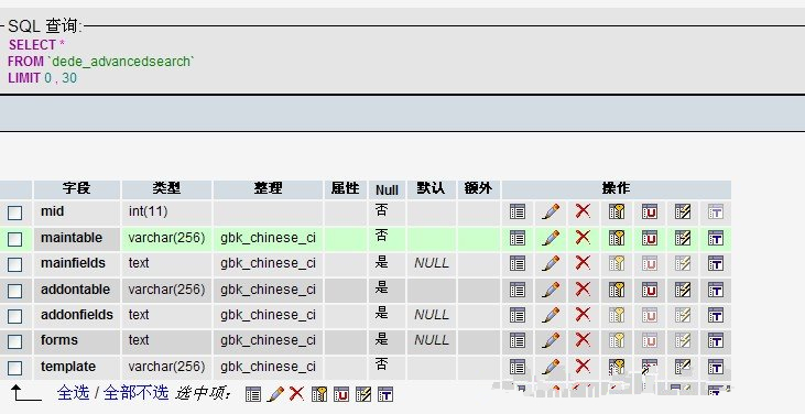 执行SQL命令,这样就成功创建dede_advancedsearch数据表,然后点“核心”>>“内容模型管理”,再点击自定义搜索图标。选择要搜索的字段,点确定后即完成dede_advancedsearch中相关数据的添加。这样相关功能就可以恢复了! PS:网站之前安装时修改表前缀的注意修改为相应正确的前缀。
