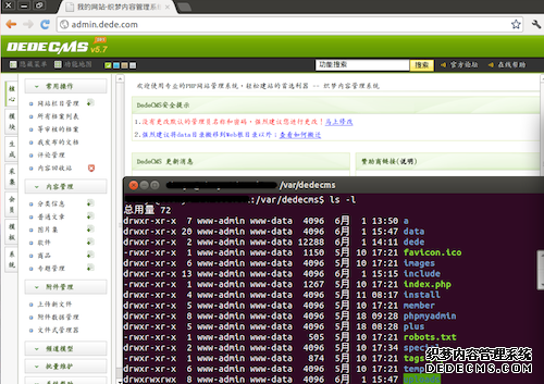 为了保证后台文件访问的安全,我们也需要给它设定文件访问权限,在终端中输入: sudo chown www-admin.www-data /var/dedecms-admin/ 这样就给这个目录指定了www-admin的访问帐号。