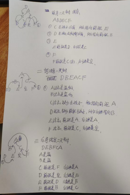 B节点时,建立前驱线索指向D,后继线索指向 -