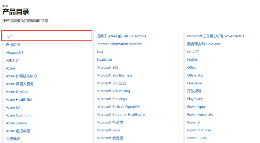 产品目录(全部),对于 .NET 开发者来说,直接选择第一个产品即可,如下图: